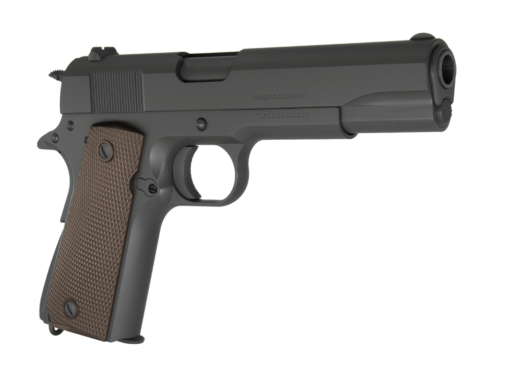 Designen följer ikoniska M1911-linjer med beavertail-sikte, tydliga manöverdon och ett komfortabelt grepp som underlättar snabb riktning och stabil kontroll under stress.